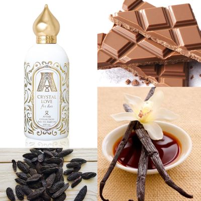 Композиция Crystal Love for Her олицетворяет характер прекрасной Лейлы, окрашивая ее мягкие и нежные черты. С первых нот духи поражают своей необычностью и чистой роскошью. Аромат насыщен соблазнительными нотами теплой бурбоновой ванили. В основе аромата пряный мускатный орех с комбинацией облака чувственного белого мускуса, который лежит на подложке из молочного шоколада. Верхние ноты очаровательных персидских роз приглушают аромат сладкого фруктового коктейля и дополняют этот элегантный шедевр!
