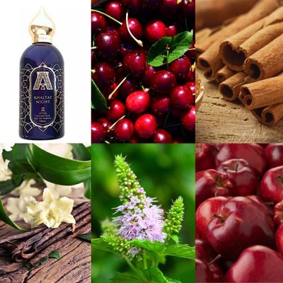 Таинственной, соблазнительной, головокружительной восточной ночи посвящается аромат Attar Collection Khaltat Night. Он привлекает к себе внимание с первой встрече благодаря оригинальному оформлению - флакону цвета ночного неба с золотистыми вкраплениями. Достойна внимания и сама парфюмерная композиция: в ней интересно сочетаются гурманский характер и утонченные, фруктовые мотивы. Презентация запаха была произведена в 2016 году. Он позиционируется как аромат-унисекс, поэтому в равной степени может быть использован как уверенными в себе, харизматичными, целеустремленными представителями сильной половины человечества, так и сексуальными, раскрепощенными, чувственными девушками. Парфюмерный треугольник начинается с аккордов спелого, сочного красного яблока, чья сладость удачно дополняется ягодными мотивами свежесобранной вишни. В сердце пирамиды расположилась утоненная, белоснежная ваниль, которая гармонично соединяется с легкой горчинкой смолистых пачулей. Композиция состоит из заманчивого, соблазнительного мускуса, который оттеняется пряной корицей и оставляет после себя непревзойденное послевкусие. Аромат Attar Collection Khaltat Night будет уместен в вечернее время суток. Он предназначен для торжественных, особых мероприятий - например, юбилея любимой родственницы или долгожданного свидания за бокалом вкусного ви