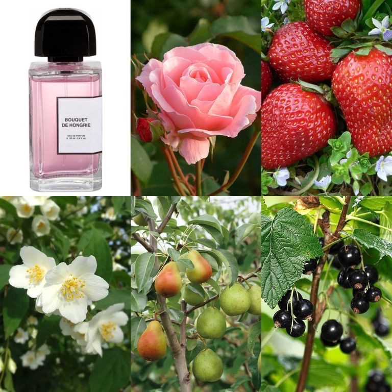 Верхние ноты представлены ароматами груши, клубники и листьев черной смородины, сердце – звучанием турецкой розы, самбака и lorenox ®. Основа Bouquet De Hongrie состоит из мускуса, амбры и белого кедра.