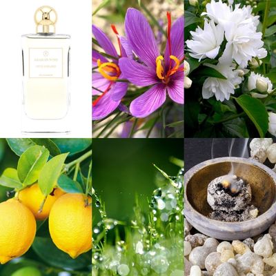 Лимон и Зеленый аккорд (зеленые ноты) образуют стартовый аккорд композиции, в сердце ? Ладан, Роза, Шафран и Жасмин; базу составляют Мускус, Пачули, Уд и Ваниль.