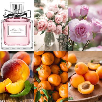 Парфюм Miss Dior Blooming Bouquet является цветочно-фруктовым ароматом с умеренно-насыщенным звучанием. Парфюмерная композиция строится вокруг выразительных цветочных аккордов розы и пиона, дополненных насыщенными фруктовыми акцентами, более умеренными другими нотами цветов, а также цитрусовыми и мускусными аккордами. Лицом нового парфюма стала известная актриса Натали Портман (Nathalie Portman).