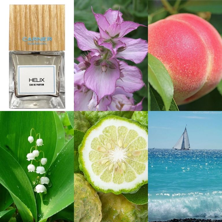 Ароматическая композиция начинает звучание с цитрусовой свежести итальянского бергамота, запаха сочного бархатистого персика и травянисто-пряного шалфея. Им на смену в сердечном аккорде приходит горьковато-соленый всплеск морских нот и цветочный дуэт медового апельсинового цвета и душистого ландыша. Завершают звучание парфюма Carner Barcelona Helix хвойно-дымные ноты виргинского кедра, влажно-древесный ветивер и мягкий шелковистый мускус, сплетающиеся в мягкий и нежный ольфакторный шлейф.