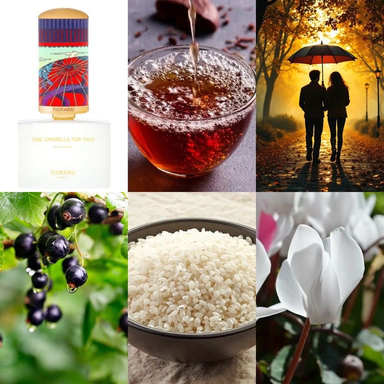 Аромат из коллекции «О ча», посвященной древнему искусству заваривания чая и секретным сортам чайных листьев и специй.Туалетная вода Floraiku One Umbrellafor Two относится к группе фруктовых ароматов. Композиция имеет скромную по нынешним меркам, но очень интересную по сочетанию ароматов ольфакторную пирамиду. На вершине звучит яркий, сочный, освежающий акцент черной смородины. Столь яркое начало сменяется более спокойным, нежным и едва уловимым ароматом чайных листьев, которые очень гармонично переплетаются с нотками черной смородины. А завершает эту утонченную и в то же время чувственную, глубокую ароматическую мелодию аккорд кедра, завораживающий своей загадочностью и внутренний силой.