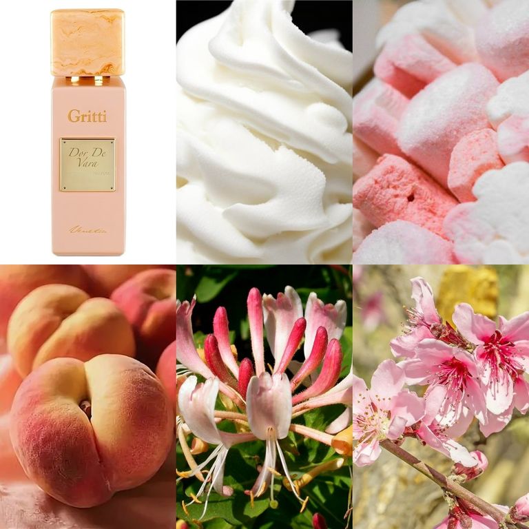 Dor De Vara от Gritti, выпущенный в 2024 году, - это аромат для женщин, принадлежит к семейству фруктовых, цветочных и гурманских. Композиция открывается нотами магнолии, цветов персика и жимолости, переходящими в сердце из зефира, персика и взбитых сливок. База состоит из белого мускуса, сандалового дерева и ванили.