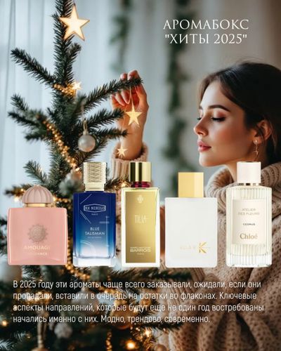 Добавить в избранное Убрать из избранного Аромабокс "Хиты 2025" 2 420 ₽ Объём Выберите параметр Объём 1 мл 2 мл 3 мл 5 мл В корзину В корзину Описание Описание Аромабокс "Хиты 2025" Amouage Guidance EX Nihilo Blue Talisman Marc-Antoine Barrois Tilia Ella K Parfums Musc K Chloe Atelier Des Fleurs Cedrus