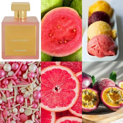 Сорбет из гуавы открывается сочными, яркими нотами мандаринов, свежей гуавы и сочно-терпкой маракуйи. По мере того, как аромат раскрывается, ноты кристаллов сахара, фруктового османтуса и белого жасмина смешиваются с вездесущей ноткой тропической, сочной гуавы. Аромат представляет собой освежающую, почти шипучую смесь, которая рассказывает историю о неторопливых днях, проведенных под солнцем.