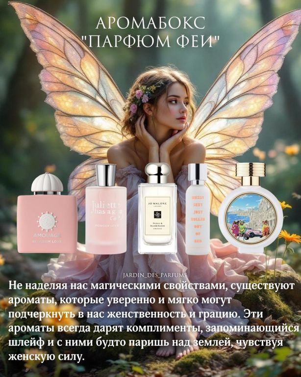 Добавить в избранное Убрать из избранного Аромабокс "Парфюм феи" 1 740 ₽ Объем Выберите параметр Объем 1 мл 2 мл 3 мл 5 мл В корзину В корзину Описание Описание Аромабокс "Парфюм феи" Amouage Blossom Love Juliette Has A Gun Powder Love Jo Malone Peony & Blush Suede What We Do Is Secret Messy Sexy Just Rolled Out Of Bed Haute Fragrance Company Dazzling Girls