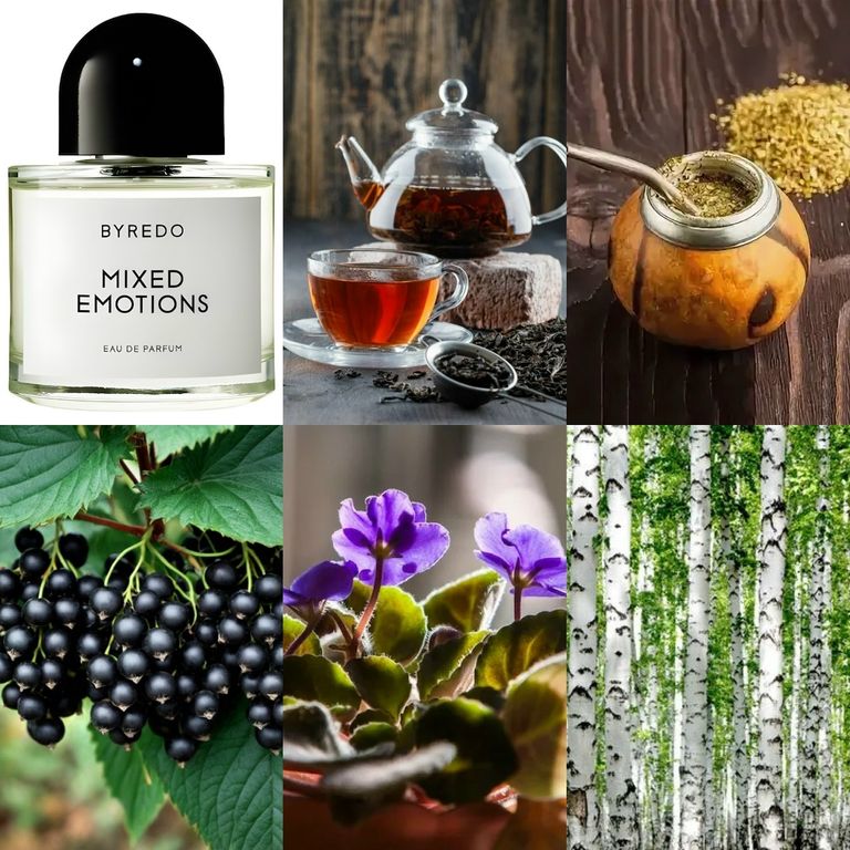В состав аромата Byredo Mixed Emotions входят следующие компоненты: чай мате, черная смородина, черный чай, листья фиалки, береза, папирус.