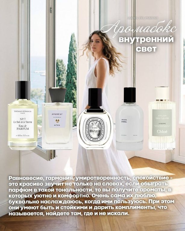 Добавить в избранное Убрать из избранного Аромабокс "Внутренний свет" 1 750 ₽ Объём Выберите параметр Объём 1 мл 2 мл 3 мл 5 мл В корзину В корзину Описание Описание Аромабокс "Внутренний свет" Eau D`Italie Altaia Amank'Ay Thomas Kosmala 7 Le Sel de la Terre Arcadia Eternal Diptyque L'eau Papier Chloe Atelier Des Fleurs Hysope
