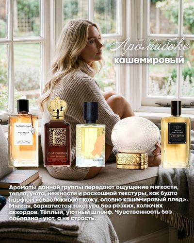 Добавить в избранное Убрать из избранного Аромабокс "Кашемировый" 2 435 ₽ Обьём Выберите параметр Обьём 1 мл 2 мл 3 мл 5 мл В корзину В корзину Описание Описание Аромабокс "Кашемировый" Van Cleef & Arpels Musc De Soie Clive Christian E Cashmere Musk Malbrum Parfums Here Comes The Son The House of Oud Breath Of The Infinite Affinessence Santal-Basmati