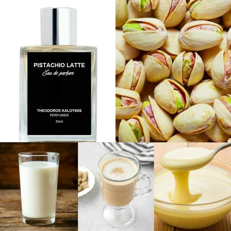Theodoros Kalotinis Pistachio Latte (Фисташковый латте) — сладкий древесно-сливочный аромат, отдающий дань уважения сливочному сочетанию фисташек и молока, которое ценится во многих культурах. Парфюм передает сущность фисташки и молока самым очаровательным, аутентичным образом, в результате чего получается аромат, не похожий ни на один другой. Он раскрывает самый аутентичный фисташковый аромат из когда-либо созданных.