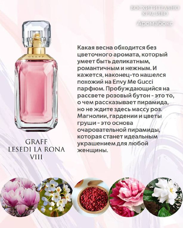 В преддверии весны и 8 марта я собрала для милых дам новенький аромабокс, который там многие ждали. Стильные, гармоничные, роскошные композиции вошли в этот обзор...я очень старательно всегда подбираю ароматы для таких сетов, тк мне хочется обьединить парфюм одной идеей, чтобы вся подборка оставила для вас массу положительных впечатлений. Комплименты новинкам я получила в первый же вечер...сама не ожидала, хотя, у меня на лице, скорее всего, было написано, что это просто шедевры. Такой красоты точно достойна каждая из нас.